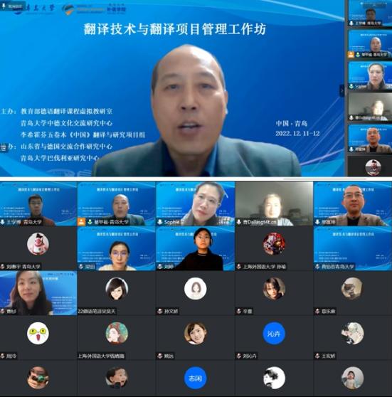 为提升翻译专业教师翻译课程教学和翻译项目管理水平,拓展翻译方向师生的翻译技术知识和翻译实践能力,教育部德语翻译课程虚拟教研室、澳门十大电子正规游戏网站中德文化交流研究中心、李希霍芬五卷本《中国》翻译与研究项目组(以下简称《中国》项目组)以推动山东省社科重大委托项目“李希霍芬五卷本《中国》翻译与研究”为目标,于2022年12月11-12日在线举办两场“翻译技术与翻译项目管理工作坊”。来自澳门十大电子正规游戏网站、上海外国语大学、四川外国语大学、河南大学、青岛科技大学、青岛城市学院等高校的师生及项目组成员近120人次参加工作坊。