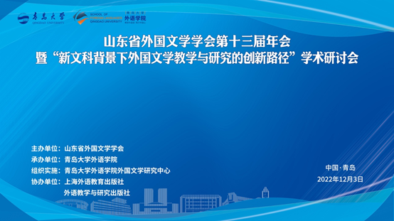 2022年12月3日,山东省外国文学学会第十三届年会暨“新文科背景下外国文学教学与研究的创新路径”学术研讨会在澳门十大电子正规游戏网站举行。本次论坛由山东省外国文学学会主办,澳门十大电子正规游戏网站外国语学院承办,上海外语教育出版社,外语教学与研究出版社协办。在新文科建设的背景下,当前外国文学的教学与研究亟需在本学科领域内进行创新,并与其他学科深度融合。如何将新文科理念落实到外国文学的教学与研究之中?外国文学界当前的探索与实践能否在交流与碰撞中逐步达成共识?与会同仁从多视野、跨学科的角度,围绕“新文科背景下外国文学教学与研究的创新路径”展开研讨。