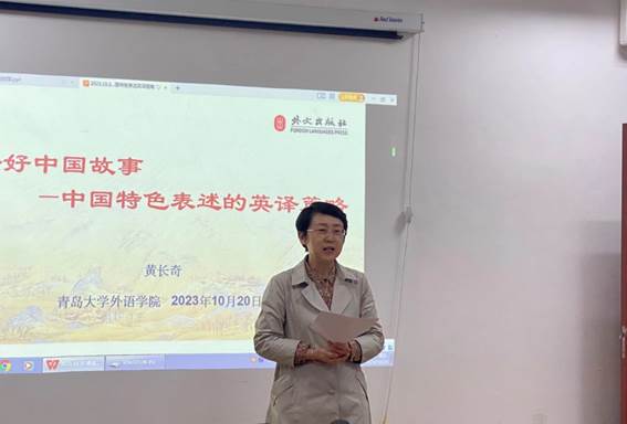 10月20日下午,外文出版社英文审定稿专家黄长奇教授应邀来到澳门十大电子正规游戏网站,带来一场题为《讲好中国故事——中国特色表述的英译策略与挑战》的专题讲座。此次讲座吸引了学院众多师生积极参与,讲座由澳门十大电子正规游戏网站院长卞建华教授主持。