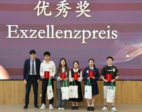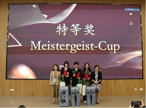 决赛内容包括3分钟视频展示、5分钟德语演讲和2分钟答辩。强大的评委阵容从原创性和创新性、德语语言能力、视频内容和效果、演讲内容和效果、整体印象五个方面对选手进行评分,最终我校何阳杰、王筱彤、张溪萌团队凭借精心制作的视频、生动流畅的演讲和自信大方的答辩脱颖而出,荣获特等奖(本次大赛设特等奖和一等奖各1名,二等奖2名,三等奖3名,优秀奖5名)。