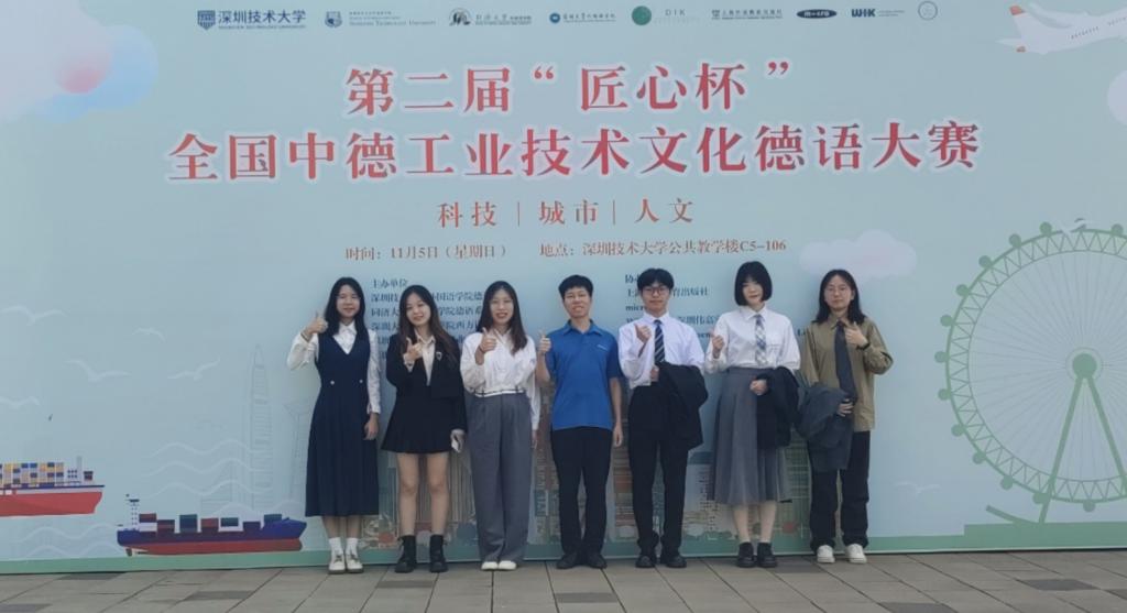 11月5日,第二届“匠心杯”全国中德工业技术文化德语大赛决赛在深圳技术大学举行,经过紧张的角逐,十大电子正规游戏官网德语系本科三年级学生何阳杰、王筱彤、张溪萌团队凭借题为“Tsingtao-Bier:Innovation mit Tradition”(青岛啤酒:坚守与创新)的视频作品、现场主题演讲及答辩荣获全国唯一特等奖,陈科羽、许筱彤、吴明霜团队凭借题为“Haier – Zukunft mit Innovation”(海尔——创新引领未来)的视频作品、主题演讲及答辩荣获全国优秀奖,德语系研究生教研室主任王学博老师荣获优秀指导教师奖,澳门十大电子正规游戏网站获优秀组织奖。