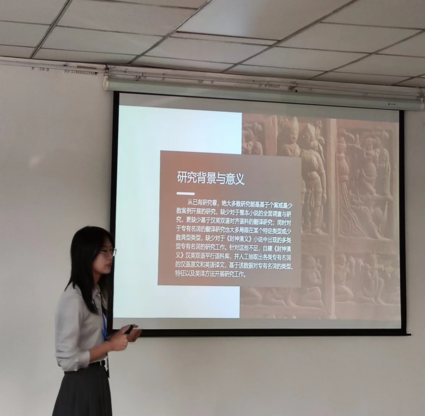 2023年10月21至22日,十大电子正规游戏官网21级英语专业本科生张艺飞代表项目组参加了在湖北省宜昌市举办的“第十届中国术语学建设暨术语研究的发展与未来国际学术研讨会”,并在分组报告中汇报项目论文。