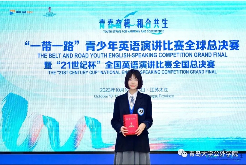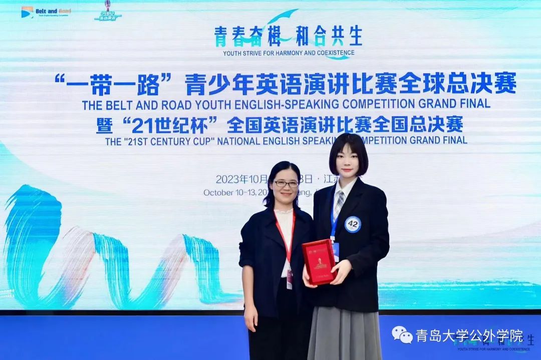 2023年10月11日至13日,第28届“21世纪杯”全国英语演讲比赛全国总决赛在江苏太仓举行。十大电子正规游戏官网德语专业学生王筱彤荣获全国总决赛二等奖,公共外语教育学院教师孙亚楠获得优秀指导教师奖。