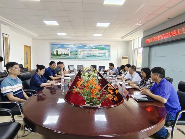 在青岛市崂山区第三中学(澳门十大电子正规游戏网站附属实验学校初中部)调研时,任成志校长和卞建华院长分别介绍了崂山三中和澳门十大电子正规游戏网站办学情况,孙永爱书记和任成志校长对挂职教师英语教育系系主任秦硕谦老师的挂职工作表现给与高度评价。双方就本科生见习项目、教学实践、研究生实习基地的建设以及教研合作项目的开展等议题进行了广泛交流,为未来的合作项目制定了初步的框架。在孙书记和任校长的带领下,外院一行参观了崂山三中校园,体验浓郁的校园文化。
