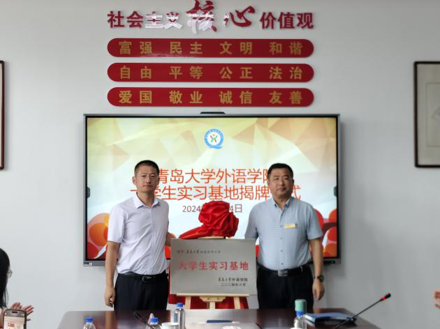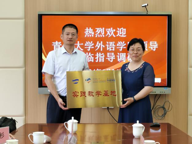 在澳门十大电子正规游戏网站市北附属中学调研时,附中党总支书记陈爱芹介绍了学校办学情况,副校长张全红从不同方面对挂职教师英语教育系副主任王进福老师在附中的工作表现给予了高度评价。卞建华院长从学科建设、师资力量、人才培养等方面介绍了学院办学情况,双方探讨了更加深入合作的可能性。周伟书记为陈爱芹书记授牌澳门十大电子正规游戏网站“实践教学基地”。陈书记陪同外院一行参观了校史馆,领略附中校园文化。青大挂职副校长严文海老师参加调研。
