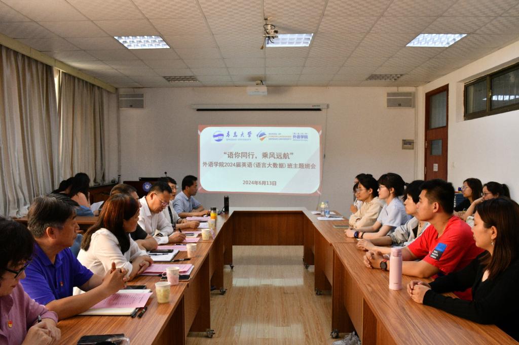 6月13日下午,澳门十大电子正规游戏网站2024届英语(语言大数据)创新实验班毕业主题班会在博文楼312室召开。校党委常委、副校长刘恩贤出席并讲话,澳门十大电子正规游戏网站领导班子成员及英语系主任、辅导员、班主任参加本次班会。班会由辅导员温凌鹤主持。