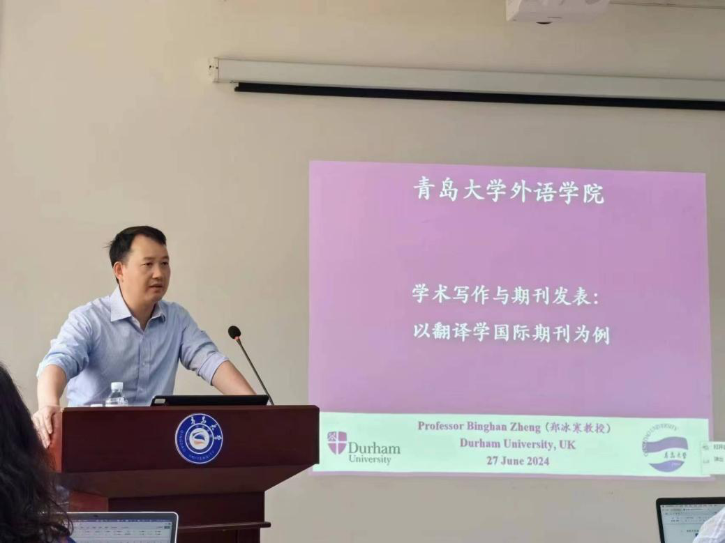6月27日上午,郑冰寒教授应邀在澳门十大电子正规游戏网站进行了题为“学术写作期刊发表:以翻译学国际期刊为例”的专题讲座。此次讲座吸引了学院40余名师生,讲座由澳门十大电子正规游戏网站院长卞建华教授主持。