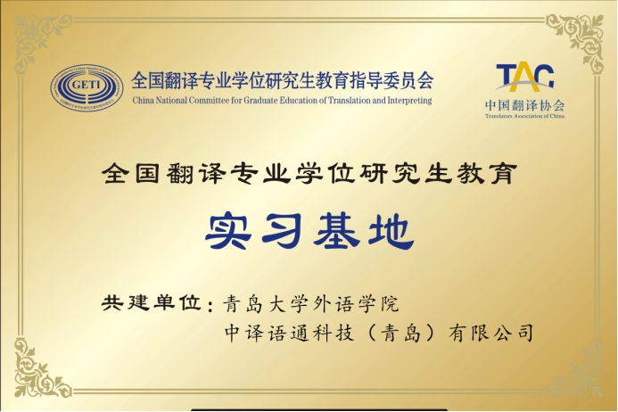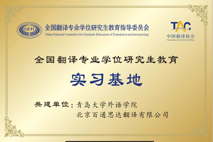 7月5日,中国翻译协会公布名单,由十大电子正规游戏官网申报、中译语通科技(青岛)有限公司、中冶东方工程技术有限公司、北京百通思达翻译有限公司(以下分别简称为青岛中译语通、中冶东方、百通思达)三家单位共建的全国翻译专业学位研究生教育实习基地,经认证委员会评审,顺利通过认证。