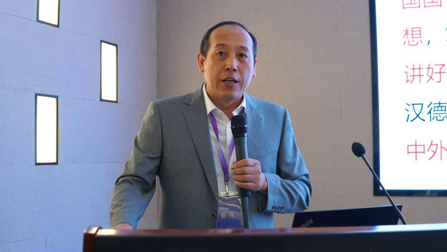 本次会议由教育部高等学校外国语言文学类专业教学指导委员会德语分委员会和南京大学外国语学院主办,綦甲福教授担任负责人的教育部“德语翻译课程虚拟教研室”作为协办单位之一参与了会议筹备。会议安排9个大会主题报告和3个分论坛。作为《汉德翻译教程》主编,綦甲福以“《理解当代中国·汉德翻译教程》课程思政理念与实践”为题作大会报告,介绍了该教材的编写理念和教学实践。作为《高级汉德翻译教程》和《汉德翻译教程》的编者,刘惠宇、王学博和綦甲福三位老师分别参加了分论坛一(“理解当代中国”德语课程教学创新与课程资源建设)、分论坛二(德语专业国际传播能力培养与课程思政路径创新)和分论坛三(新文科建设背景下高质量复合型德语人才培养)的交流与讨论。