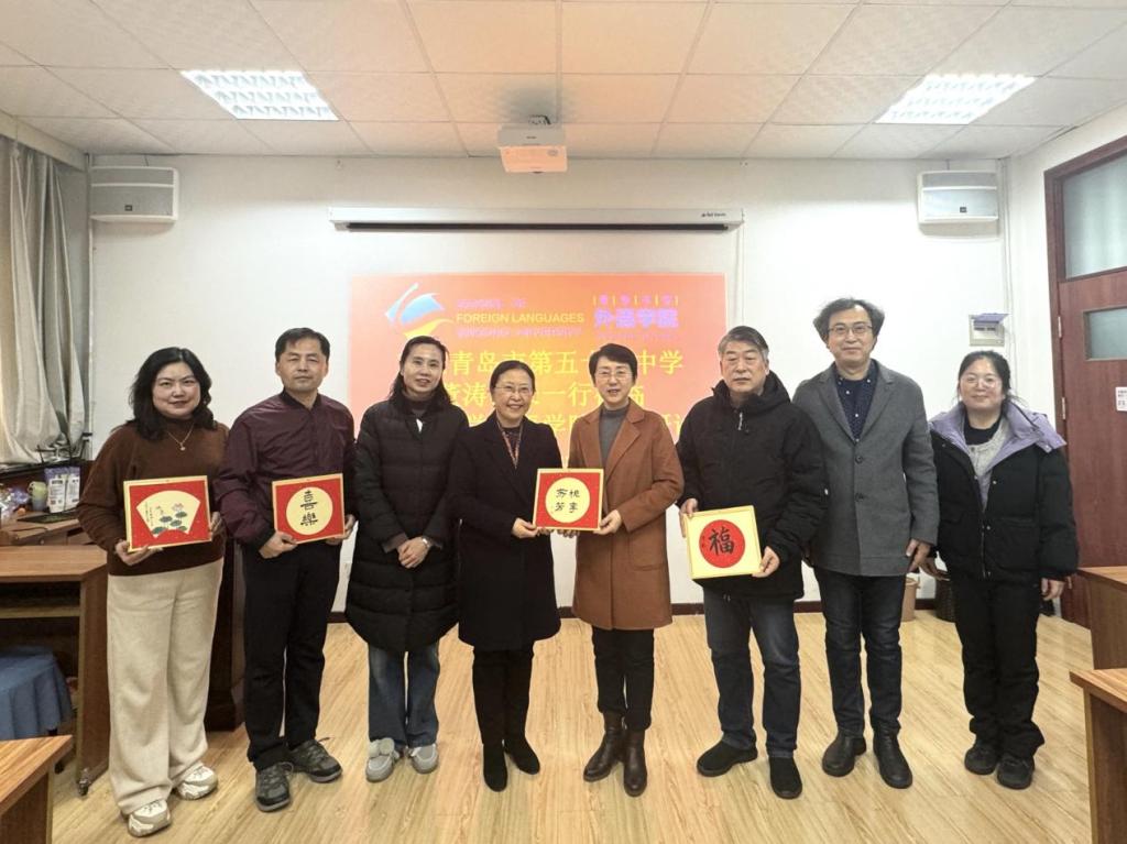 1月12日,青岛第五十七中学校长董涛、副校长杨春意一行访问十大电子正规游戏官网。十大电子正规游戏官网卞建华院长、副院长布占廷、副院长娄永强、英语教育系主任秦硕谦、副主任王进福参加座谈。