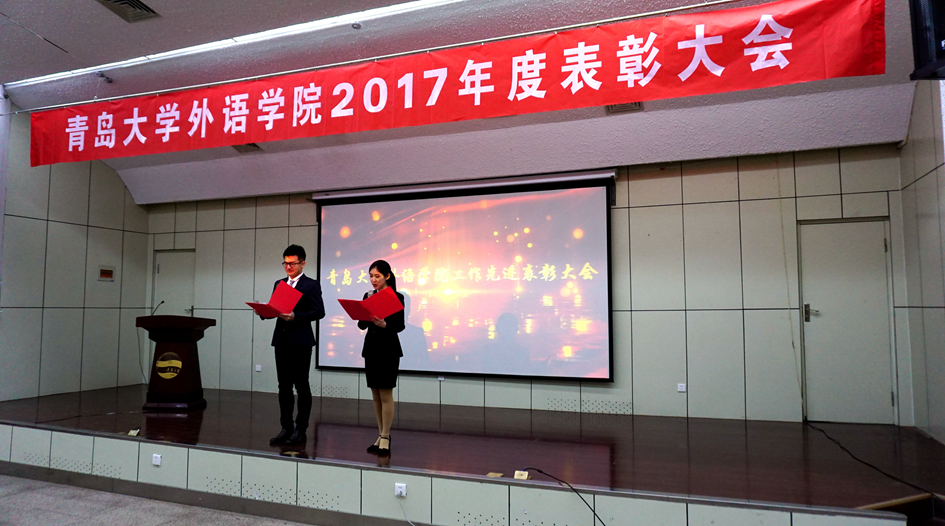 3月22日下午,澳门十大电子正规游戏网站在图书馆报告厅隆重举行2017年度表彰大会。德语系、日语系、学工办和党政办4个工作先进集体,牟晓燕等20位学校和学院综合考核优秀人员,陈骏飞等19位年度工作突出个人受到表彰。