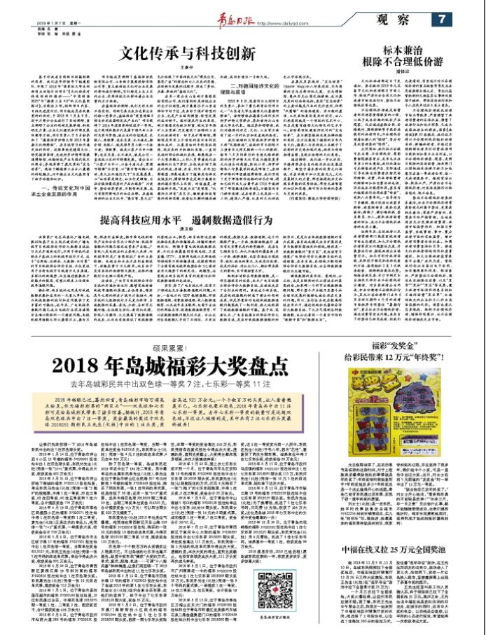 日前,十大电子正规游戏官网德语系2016级本科生王康平撰写的《文化传承与科技创新》调研文章,在2019年1月7日《青岛日报》“观察”版显著位置发表。