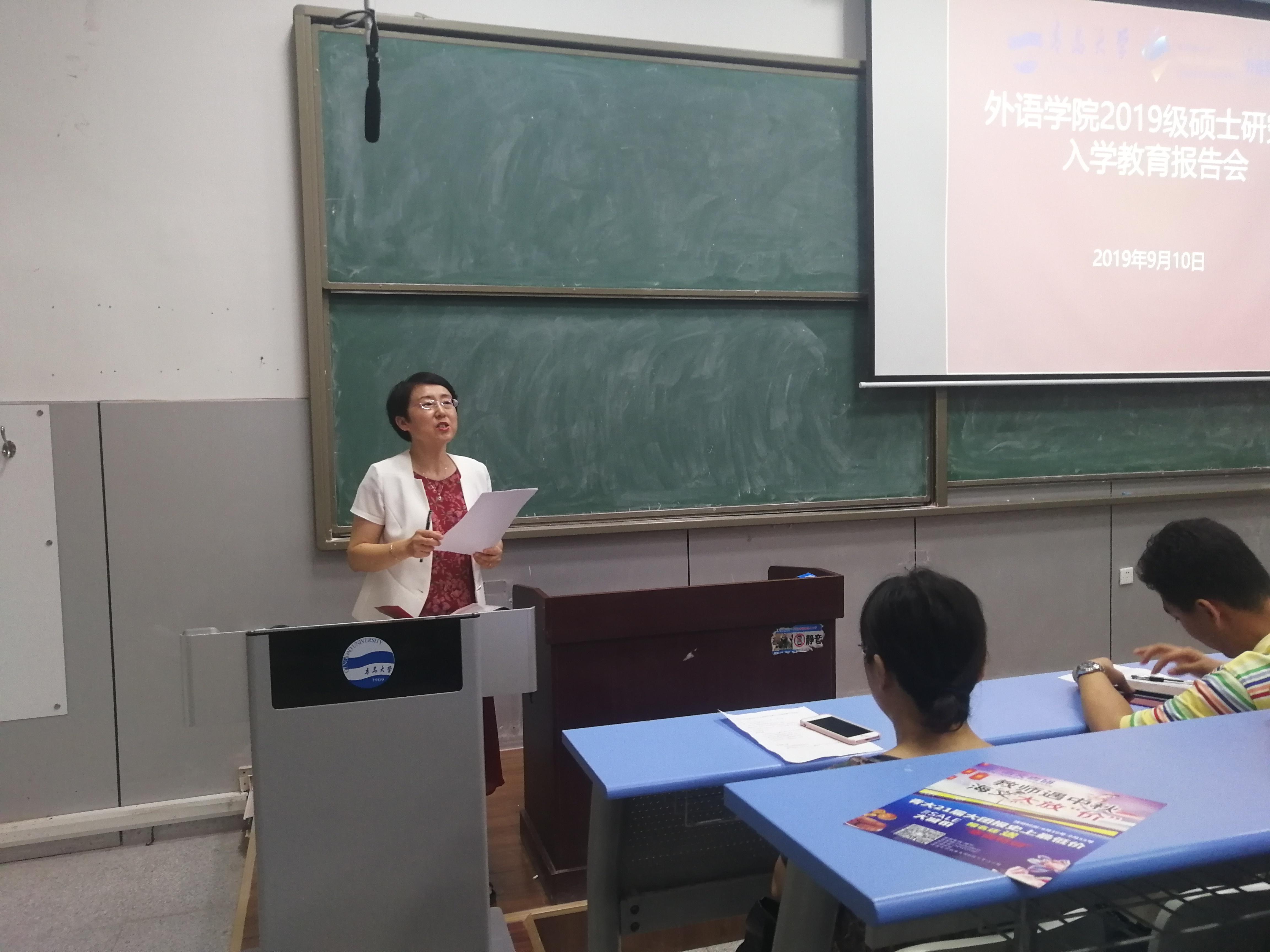 王海青副书记简要介绍了学院概况,师资水平;她鼓励研究生们不仅要扎实学习,也要积极地参与到学院的大型活动中来,全面发展;要多和老师,同学们交流,共同进步。