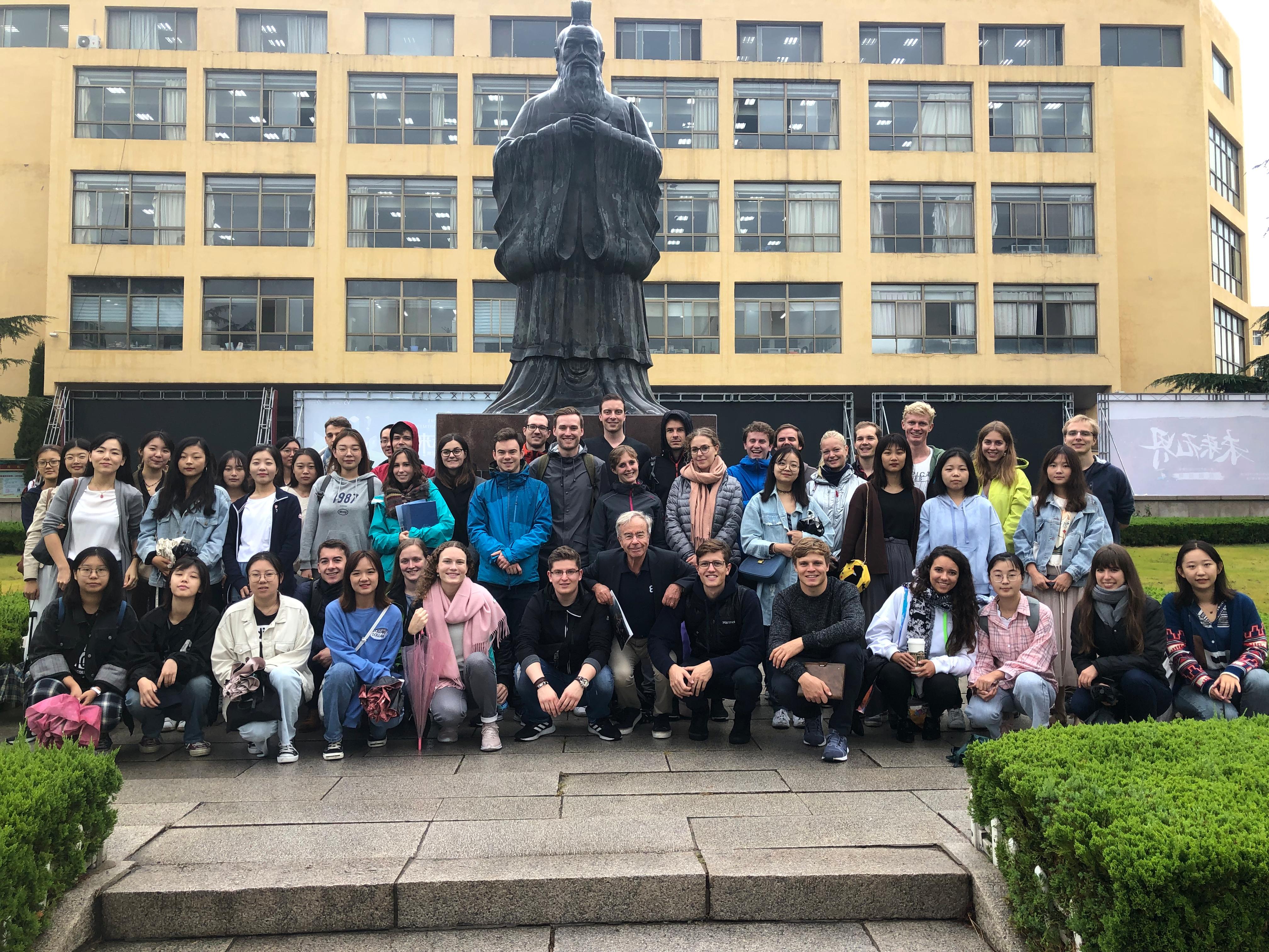 2019年10月11日上午,在Hans-Ulrich Kuepper教授、Susanne Lenz女士的带领下,德国巴伐利亚州精英大学代表团40名学生再次到访十大电子正规游戏官网。澳门十大电子正规游戏网站院长助理、德语系副主任曹杉、德语系副教授陈骏飞及近40名德语系研究生和本科生参加了交流活动。