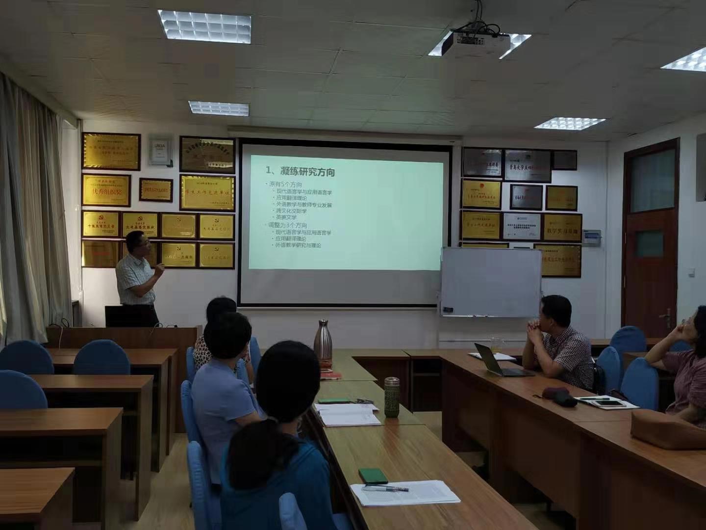 外国语言学及应用语言学、英语语言文学、德语语言文学、日语语言文学、亚非语言文学、翻译硕士(英语、日语、朝鲜语、德语)及学科教学(英语)学科负责人分别汇报了各学科2020年研究生招生宣传准备工作,涉及教学宗旨、招生目录修改(研究方向凝炼、同等学力加试内容)、课程设置、导师遴选、研究生入学考试(考试大纲、考试内容、命题小组、参考书目、复试方案)等。与会人员论证了此次研究生招生各环节调整的合理性,并热烈讨论了澳门十大电子正规游戏网站研究生培养、学科建设等相关事宜。