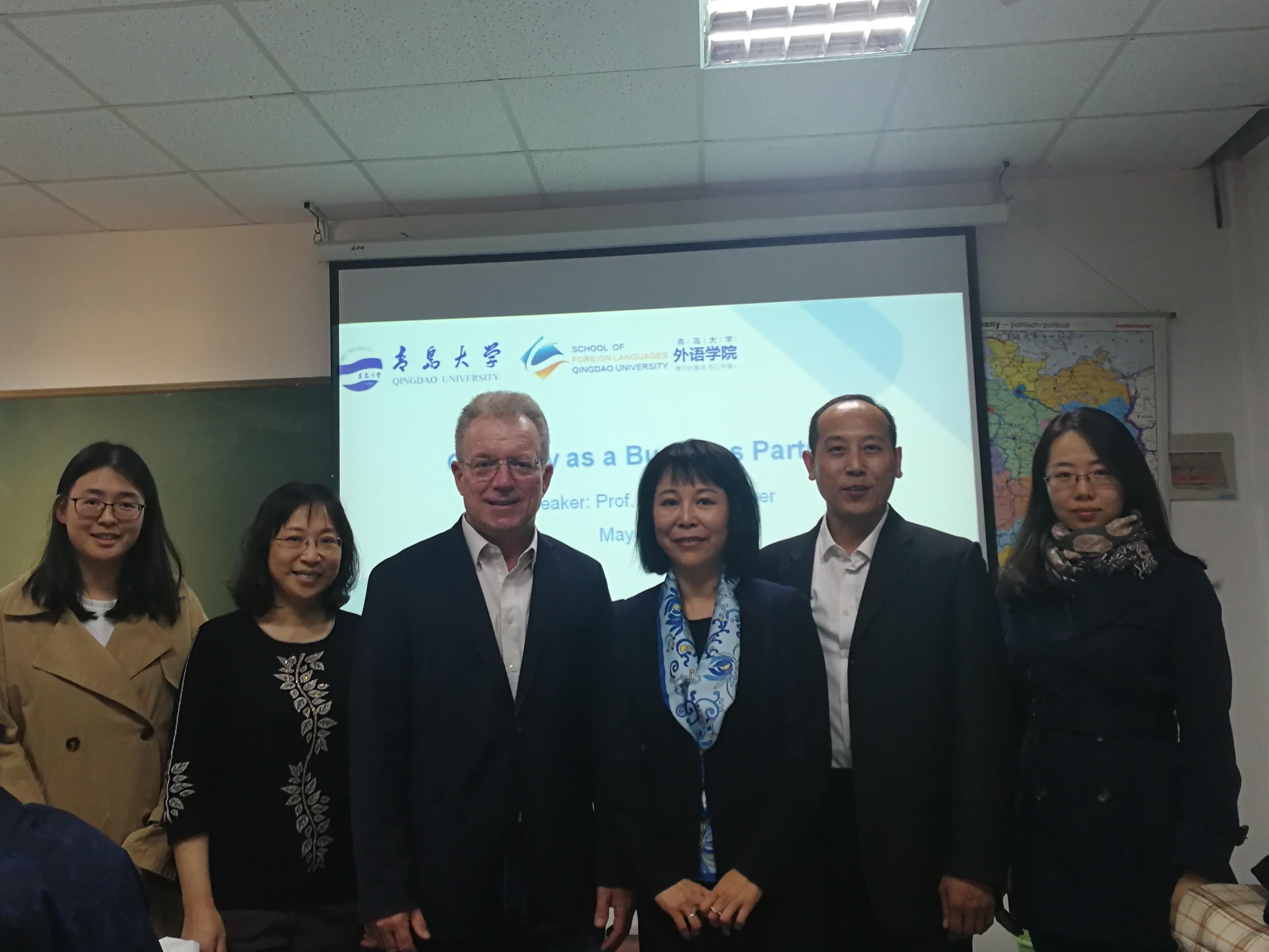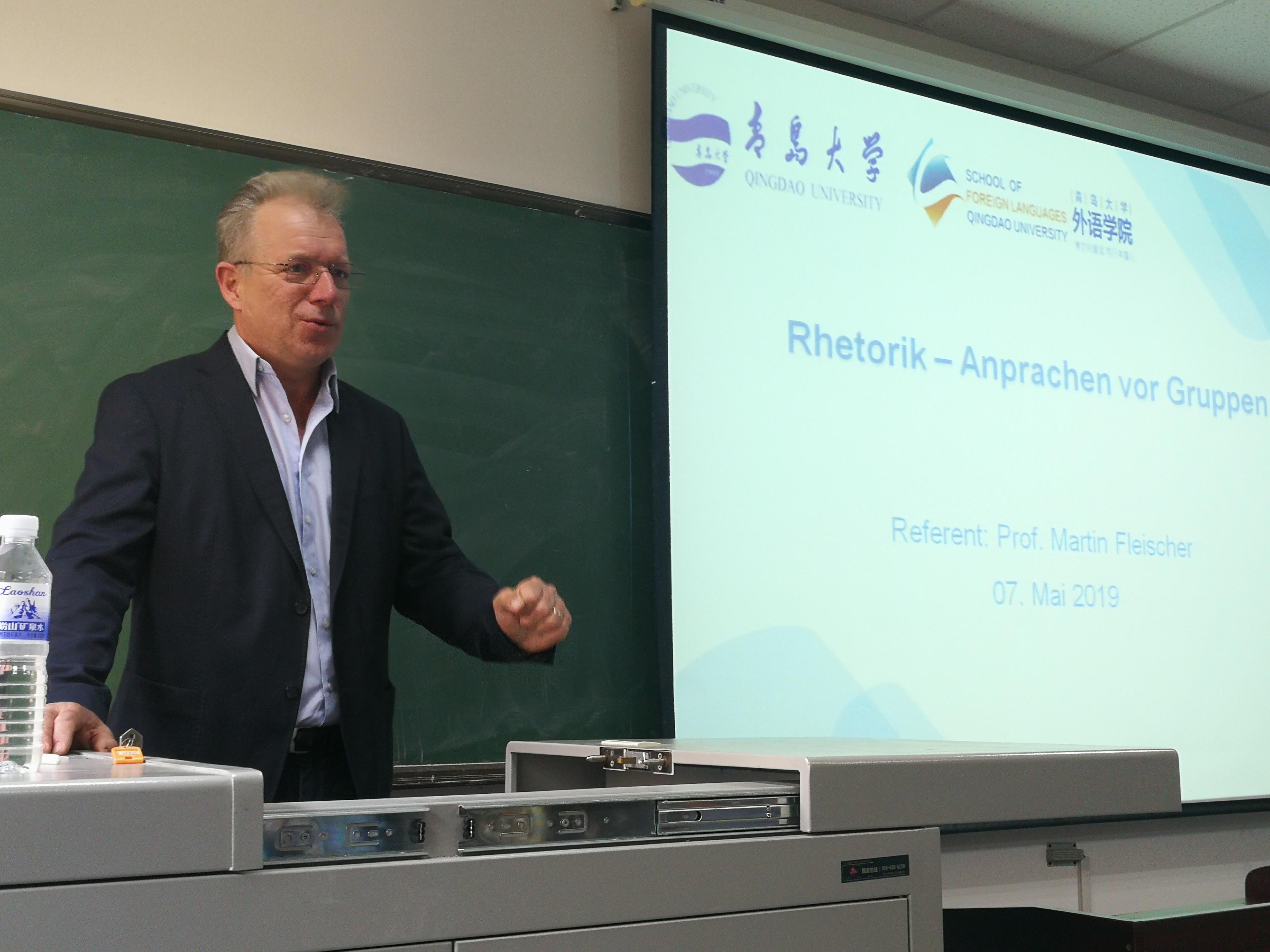 5月6日-7日下午,澳门十大电子正规游戏网站客座教授、德国驻广州总领馆总领事冯马丁(Martin Fleischer)先生受邀到访我校讲学。冯马丁先生在博文楼310分别用英语和德语为我校师生举办了题为“作为经济伙伴的德国”的两场讲座和题为“讲话的艺术”的两次研讨课程。