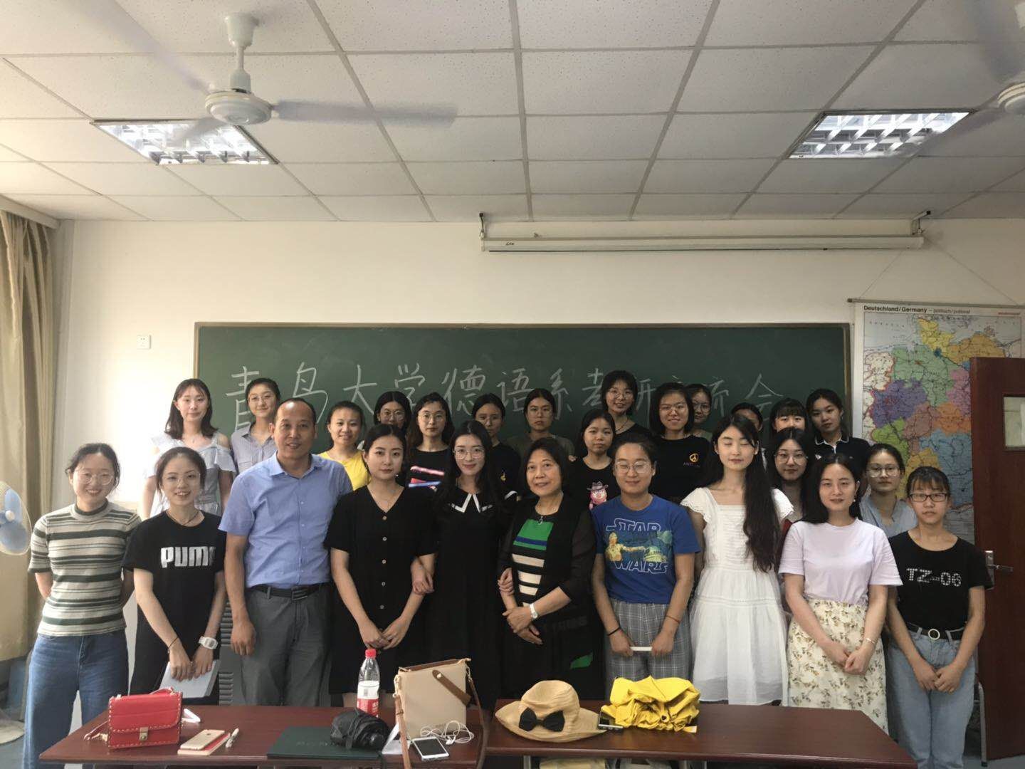 在夏季学期来临之际,澳门十大电子正规游戏网站德语系于6月27日下午在博文楼310教室召开考研经验交流会。德语系主任綦甲福和陈骏飞老师与2015级优秀毕业生一起,对2016、2017级近30名同学的考研及未来规划提出了意见和建议,并对相关问题进行了解答。