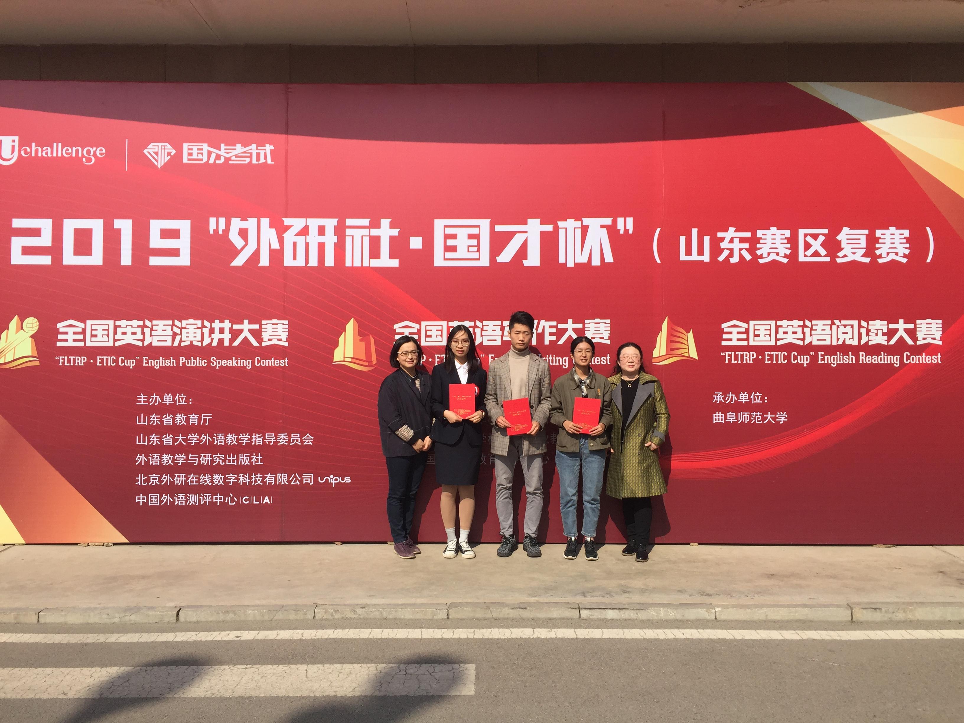 10月27日,2019年“外研社·国才杯”全国英语大赛山东赛区复赛在曲阜师范大学落下帷幕。十大电子正规游戏官网2017级李奇英、韩通、张露茜三名同学代表我校专业组分别参加了写作、阅读、演讲大赛。经过两天的角逐,李奇英获得写作大赛一等奖,韩通获得阅读大赛一等奖,张露茜获得演讲大赛二等奖。吕云、徐平、潘劲松三位老师获得优秀指导教师称号。来自全省16地市、近70所高校的400余名选手参加了本次大赛。