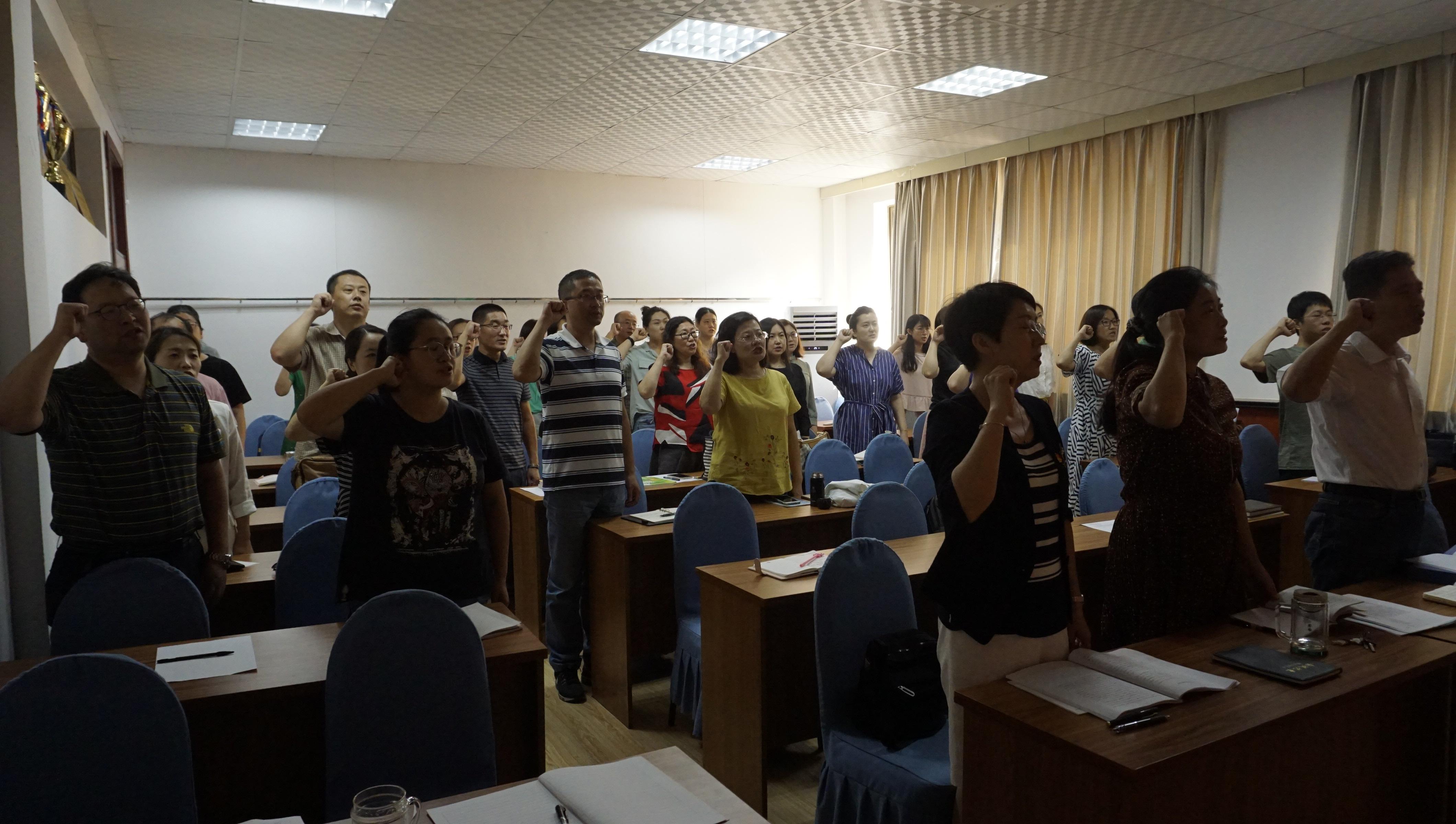 9月29日,澳门十大电子正规游戏网站党委在博文楼312会议室举办“牢记党员使命,重温入党誓词”主题党日活动,全体教职工党员参加。