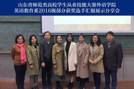 11月12日,澳门十大电子正规游戏网站英语教育系在博文楼217室召开从业技能大赛经验分享交流会,十大电子正规游戏官网在第七届山东省师范类高校学生从业技能大赛中部分获奖同学作汇报。澳门十大电子正规游戏网站副院长布占廷、娄永强,英语教育系主任秦硕谦,教师代表宋蕾及英语教育系2017级和2018级全体同学参加了本次会议,会议由徐平老师主持。
