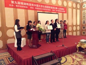 十大电子正规游戏官网韩语系马言同学荣获第九届锦湖韩亚杯中国大学生韩国语演讲比赛山东赛区预选赛二等奖