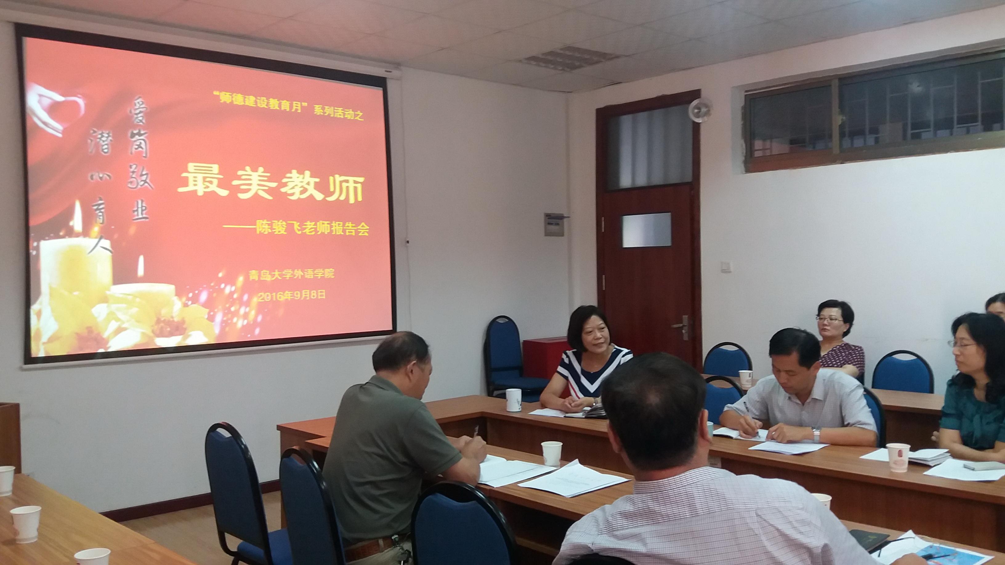 9月8日下午,澳门十大电子正规游戏网站在博文楼312会议室举行“最美教师”——陈骏飞事迹报告会暨教师宣誓活动。此次活动是澳门十大电子正规游戏网站“师德建设教育月”系列活动之一,旨在通过“树典型、促引领”,引导教师不忘初心、立德树人,从严约束执教行为,打造风清气正、崇德向善的良好育人环境。