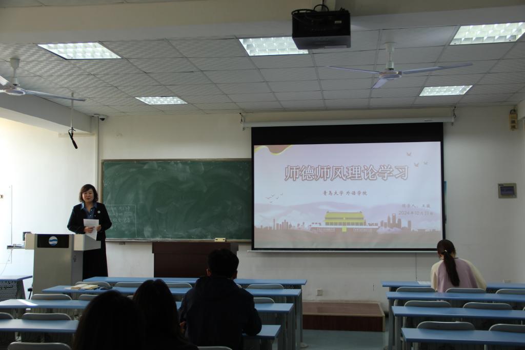 王薇副院长强调了教育创新的重要性,并带领全体教师学习优秀的师德师风,提出“高质量的教师,才能培养出高质量的学生”。她呼吁教师们通过互相学习和共同进步,持续提升教学水平,并注重培养良好的师德,推动澳门十大电子正规游戏网站教育质量的提升。
