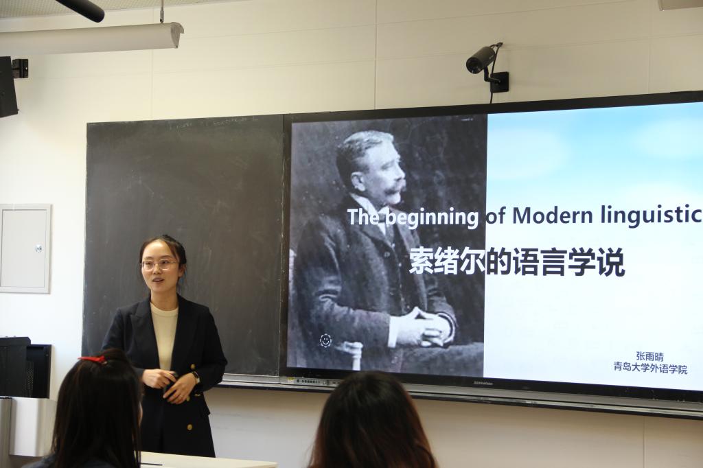 三位青年教师分享了他们在教学大奖赛和创新大赛中的经验:法语系副主任马一凡分享了比赛中的课程设计策略和学生互动技巧,强调细节和互动对教学效果的影响;法语系教师王墨结合比赛经验,讲解了参赛技巧及需要注意的事项;西班牙语教师王斐详细介绍了青年大奖赛的评分标准,并指出课程设计应紧扣这些标准。