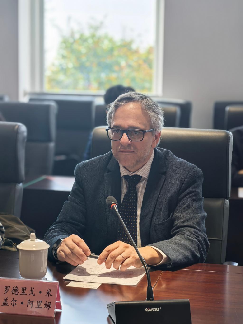 会议由党委书记陈崇研主持,他对阿里姆校长的到访表示热烈欢迎。 随后,院长卞建华在致辞中回顾了澳门十大电子正规游戏网站的发展历程、专业建设成果以及研究生教育的卓越成就,并特别强调了与乌拉圭共和国大学在孔子学院和“中国——乌拉圭研究中心”等项目上的合作成果。卞院长展望了双方在人才培养和科学研究领域进一步深化合作的美好前景,期望共同为中乌高等教育合作树立典范,为构建中乌命运共同体贡献力量。