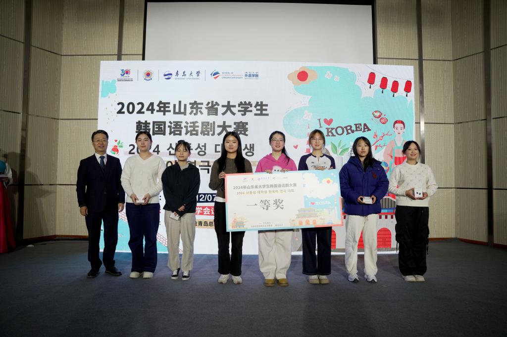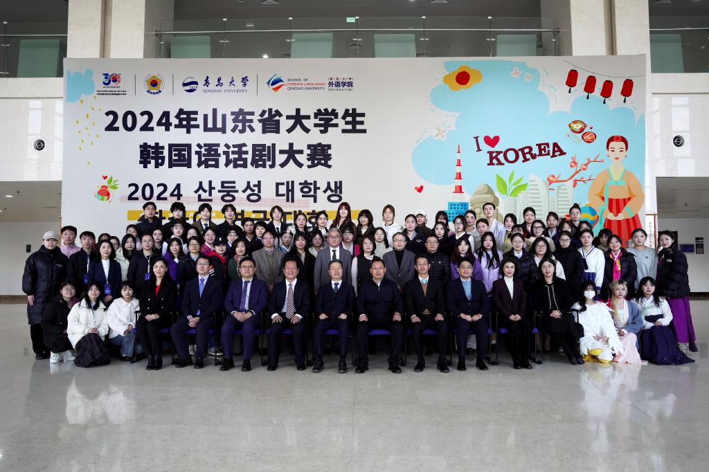 12月7日上午,2024年山东省大学生韩国语话剧大赛总决赛在澳门十大电子正规游戏网站圆满举行。此次活动共有山东省各大高校韩国语系的大学生及教育工作者等约200人参加。大韩民国驻青岛总领事馆、青岛市外办、澳门十大电子正规游戏网站相关领导出席总决赛开幕式。