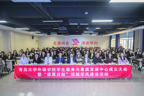 3月20日,澳门十大电子正规游戏网站学生服务与素质发展中心成立大会暨“语翼启航”班级学风建设活动启动仪式在大学生科创文化中心隆重举行。澳门十大电子正规游戏网站党委常委、副校长陈涛,校团委书记李鹏,学生工作处副处长葛晓茜,党委宣传部副部长郭书君,澳门十大电子正规游戏网站党委书记陈崇研、院长卞建华、党委副书记于苗、副院长布占廷、副院长曹杉以及全体辅导员和学生干部参会。本次会议由澳门十大电子正规游戏网站党委书记陈崇研主持。