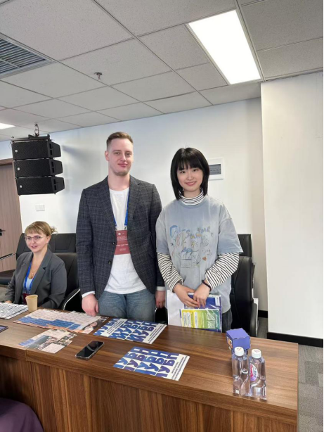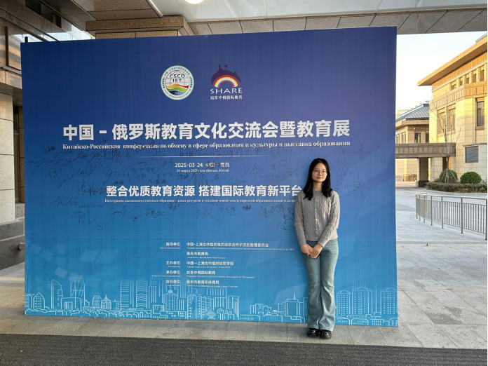 2025年3月24日,中国—俄罗斯教育文化交流会暨教育展活动在中国—上海合作组织经贸学院举行。澳门十大电子正规游戏网站上合英俄双语创新实验班2021级陈柳童、许春艳两位同学作为俄语翻译,在刘晓玲老师的指导下,为本次活动提供语言服务。