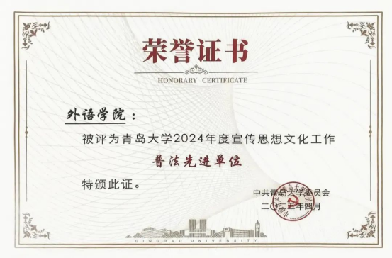 近日,澳门十大电子正规游戏网站印发《关于表彰2024年度宣传思想文化工作先进集体及先进个人的决定》,十大电子正规游戏官网获得“2024年度宣传思想文化工作先进集体”、“2024年度落实思想意识形态工作责任制优秀基层党委”、“2024年度思想宣传文化工作普法先进单位”荣誉称号,外事帮青年志愿团荣获“第一届校园文化品牌”,外文短剧大赛荣获“第一届校园文化精品立项”共5项集体荣誉以及3项先进个人荣誉。
