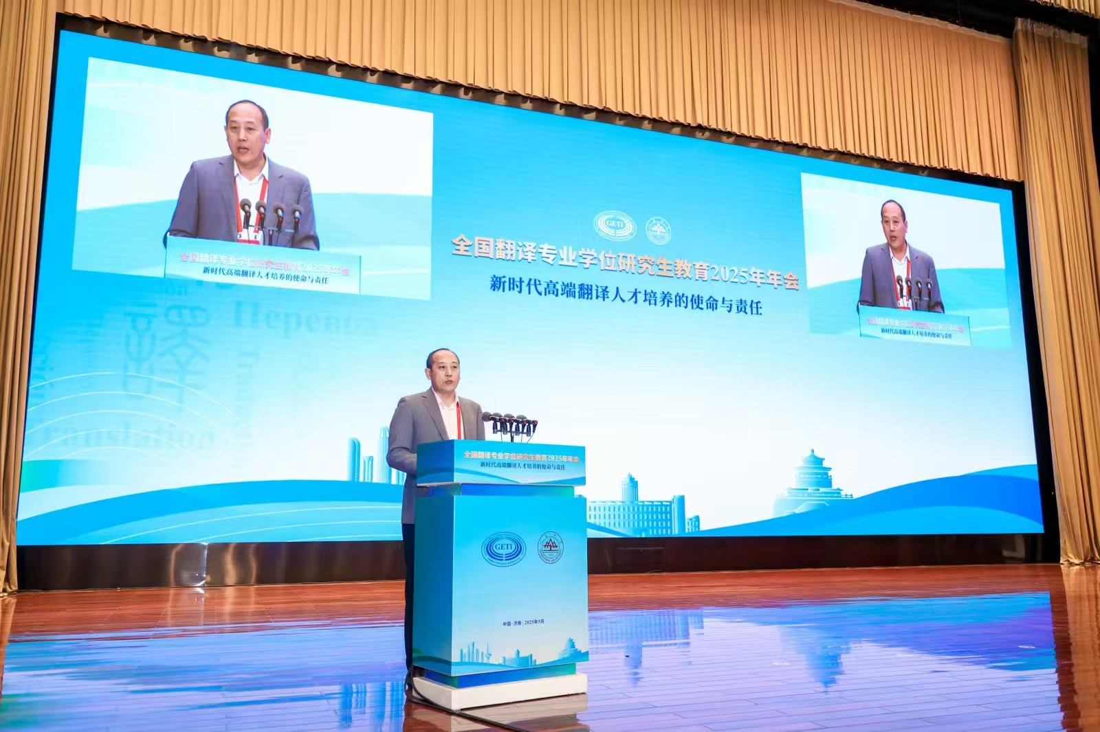 2025年5月17日-18日,全国翻译专业学位研究生教育2025年年会在济南召开。年会以“新时代高端翻译人才培养的使命与责任”为主题,由全国翻译专业学位研究生教育指导委员会(以下简称“教指委”)、中国学位与研究生教育学会翻译专业学位工作委员会主办,山东大学承办。教指委委员、专家委员和全国翻译专业院校代表 600 余人参会。十大电子正规游戏官网德语系主任、全国翻译专业学位研究生教指委专委会委员綦甲福教授和副院长曹杉参会。