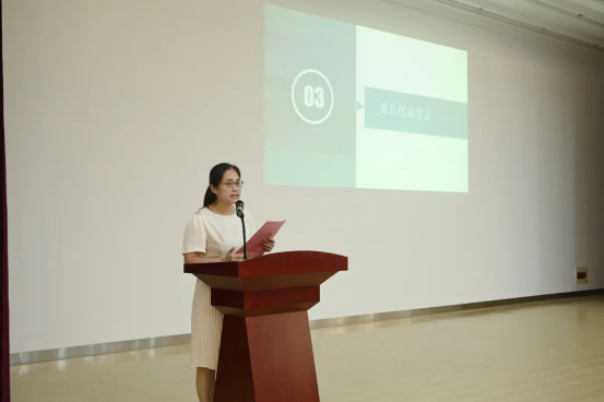 新生刘俊含的家长作为代表上台发言。她对学院精心筹备此次家长会、为新生成长搭建优质平台表示衷心感谢,分享了作为家长对孩子步入大学的欣慰与期许,并明确表达了对家校协同共育模式的认可与信心,承诺将积极配合学院工作,与学校同向发力,共同助力孩子实现人生新阶段的成长目标。