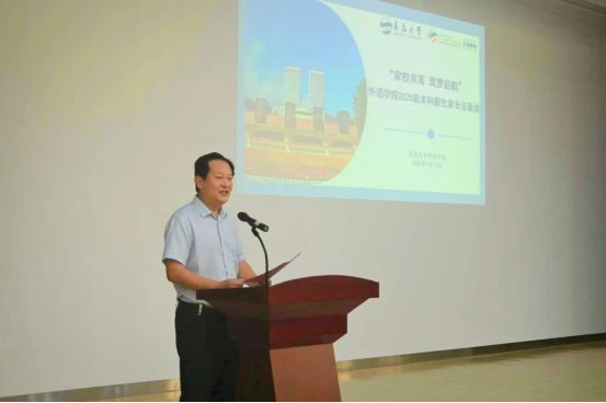会议伊始,卞建华院长代表学院对2025级本科新生及家长的到来表示热烈欢迎。她立足学院发展历程与人才培养目标,系统全面地介绍了澳门十大电子正规游戏网站的学科建设、师资力量、教学成果等基本情况。针对家长普遍关注的问题,卞院长结合鲜活案例进行深入浅出的解读,清晰阐释了外语学科在新时代的独特价值与发展前景。同时,她着重强调,学生的成长离不开家校双方的紧密协作,希望家校携手构建良好育人环境,助力学生成长为具备国际视野的复合型、高层次外语人才。