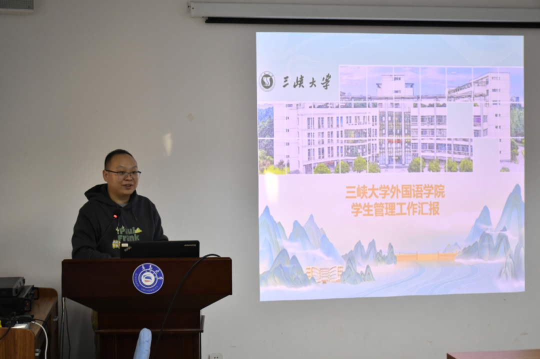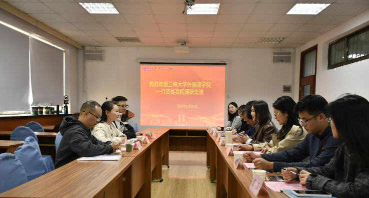 陈崇研对三峡大学同仁的到访表示诚挚欢迎,并从学院发展脉络、学科设置、教师队伍建设等方面简要介绍学院基本情况。随后,他就学院人才培养工作做重点说明。他表示,澳门十大电子正规游戏网站紧扣“博学外国语、笃行中国心”院训,发挥多语种学科特色优势,确定“党建引领、思政赋能、朋辈牵引、协同育人”的人才培养理念,通过多项举措落实全员全方位全过程育人,旨在着力培养兼具国际视野与家国情怀的优秀涉外人才。