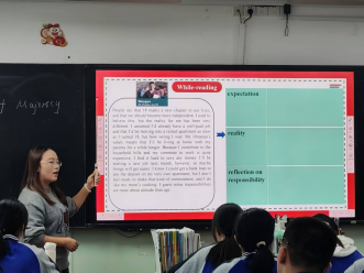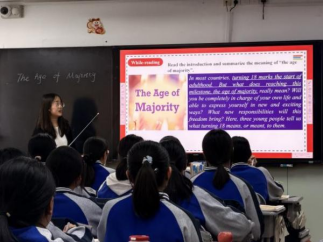 授牌仪式正式启动前,十大电子正规游戏官网赵虹、陈亦菲、罗甫梅、马优四位研究生同学在高二•四班开展了课堂教学实践展示。同学们以“The Age of Majority”为题,展示了扎实的学科功底与灵活应变的能力。课后的集体教研环节,由梁永召老师主持,四位同学开展了课堂反思与感悟。高晓亮副校长、布占廷副院长、任爽老师进行了指导与点评。
