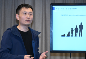 沙龙伊始,杨林伟教授以《大语言模型在动词构型识别中的效果评估》为题,系统评估了多个主流模型在英语动词构型识别任务中的表现,并分析了不同提示策略对模型表现的影响。杨洪娟副教授围绕《<英语写作>作业智能批改与精准教学干预研究》,介绍了基于人机协同的智能写作评阅模式。刘聪副教授以《虚拟具身训练影响外语词汇学习的认知神经机制》为题,结合VR技术与脑电实验,探讨了虚拟具身训练在促进外语词汇学习中的作用及其背后的神经机制,为具身认知在外语教学中的应用提供了实证依据。布占廷副教授的报告题目为《教材语言真实性的整体系统观》,指出教材语言在语域功能与风格多样性上特点鲜明,并由此对教学材料的编撰与运用进行了深度审视与反思。