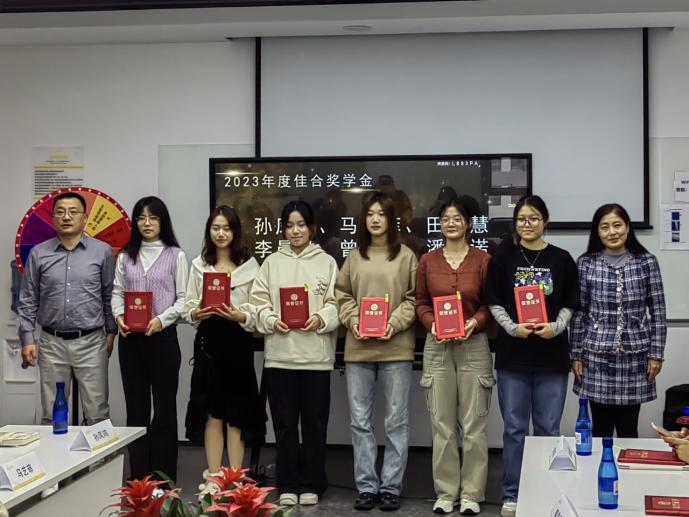 青岛佳和永润贸易有限公司创始人兼总经理、澳门十大电子正规游戏网站优秀校友于超接见了外院一行,引导参观了企业办公区域,介绍了公司的发展历程、业务类型、企业文化及未来发展规划,并为澳门十大电子正规游戏网站7位品学兼优的学生颁发奖助学金。